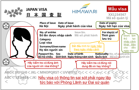 *Nếu thông tin trên visa có sai sót phải ngay lập tức liên hệ với Phòng Lãnh sự Đại sứ quán Nhật Bản và nhận lại visa đúng nội dung.